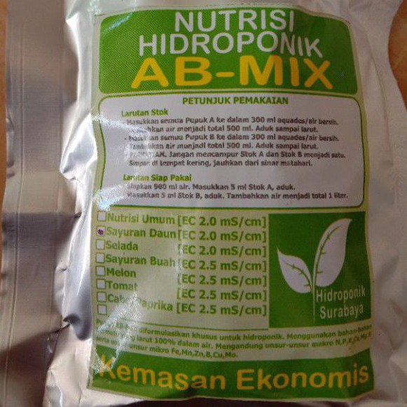 Jual Pupuk Ab Mix Sayuran Daun Nutrisi Hidroponik Bayam Kangkung Sawi Selada Dll Indonesia Shopee Indonesia