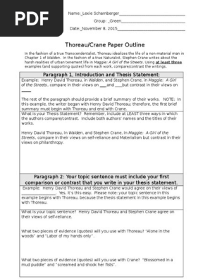 Thoreau Compare Contrast Outline Pdf Walden Henry David Thoreau